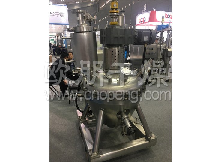 3、干燥效率高:有效傳熱面積大,是容器內面積1.4倍;物料在器內呈螺旋提升,再沿主軸呈渦流下降,在分散運動中均勻有效受熱;機頭高真空與機底同溫高速脈沖氣流同向結合,有效帶走物料的溶劑;雙通道真空管口,防止真空堵塞,降低阻力,提高抽氣速率,帶反吹的捕集器,能有效提供高真空。